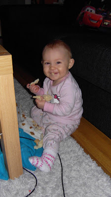 Nu är hon PÅ ALLT hon ser. Ska även stoppas i munnen. Gäller att hålla efter här hemma hela tiden. Fattar inte hur hon kan hitta de där små sakerna som man själv inte ser. Milton var inte alls lika jobbigt med de här att stoppa allt skit i munnen.